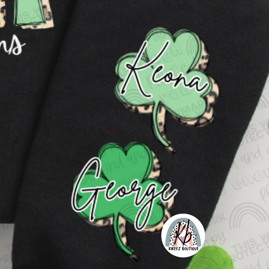 Customizable St. Patrick’s Day "Mama" Crewneck with Clover Sleeve Accents